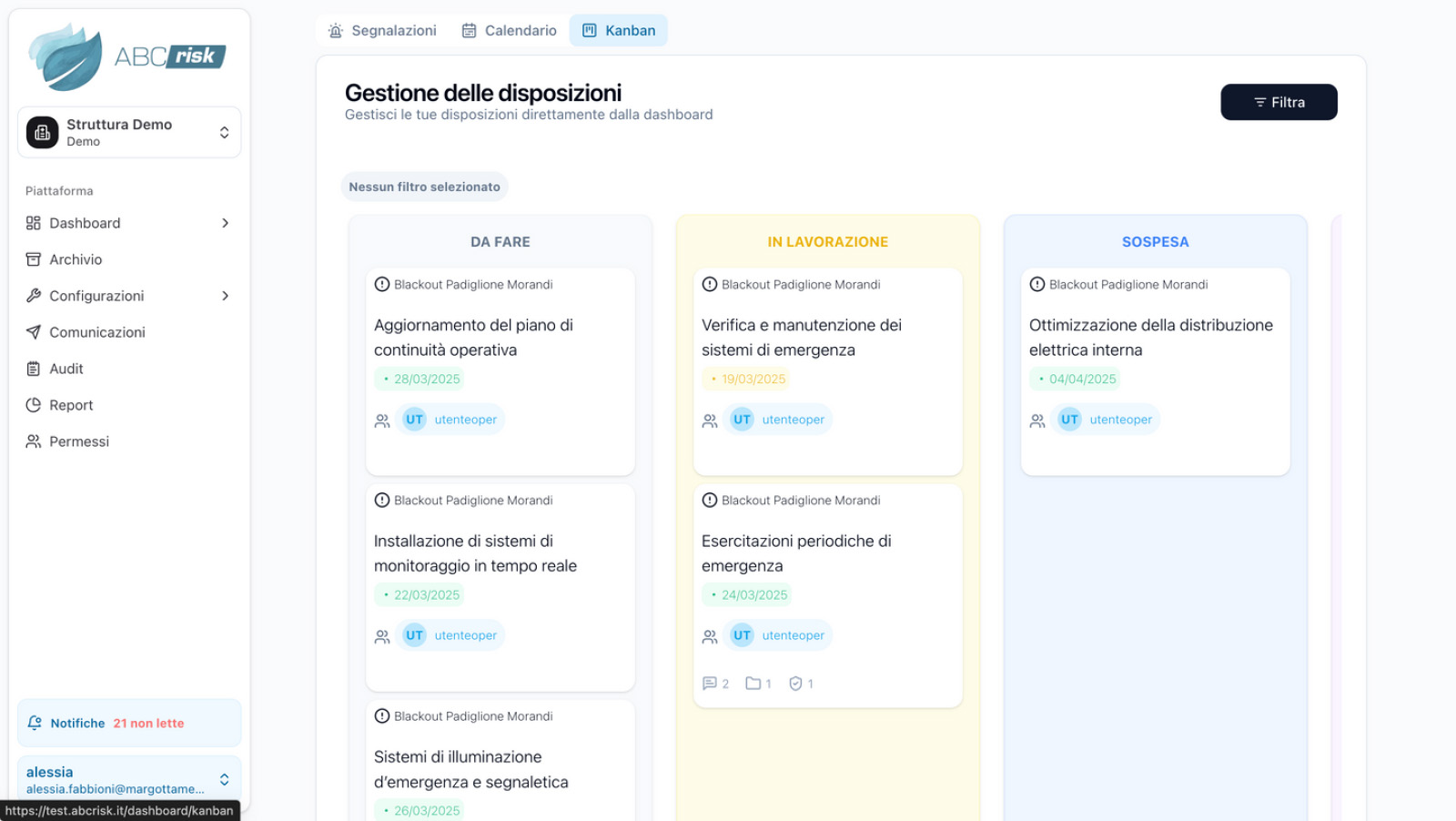 Fornisce indicatori, allarmi e documentazione centralizzata, favorendo la trasparenza e la tracciabilità dei processi. - Tutela professionale